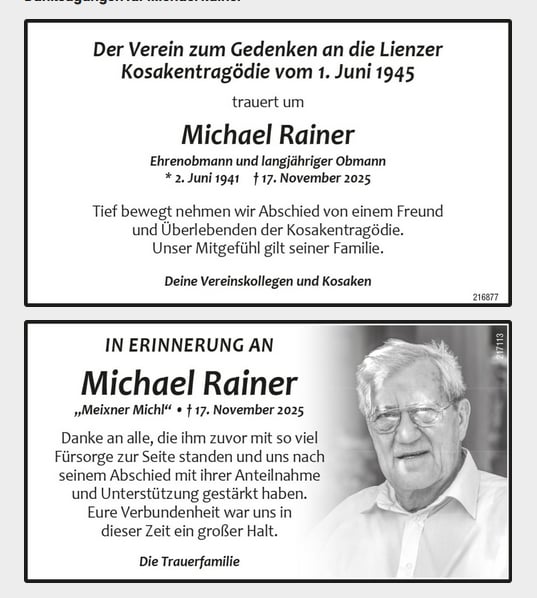 Michael Rainer † 17.11.2025